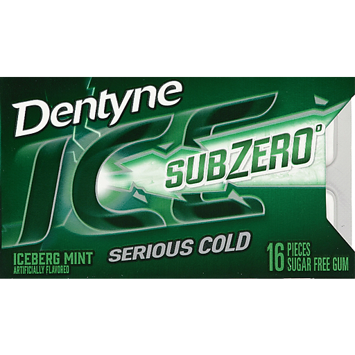 - The product category for Dentyne Ice Sub Zero Gum Iceberg Mint Sugar Free1X16 Pc is Candy & Chocolate.