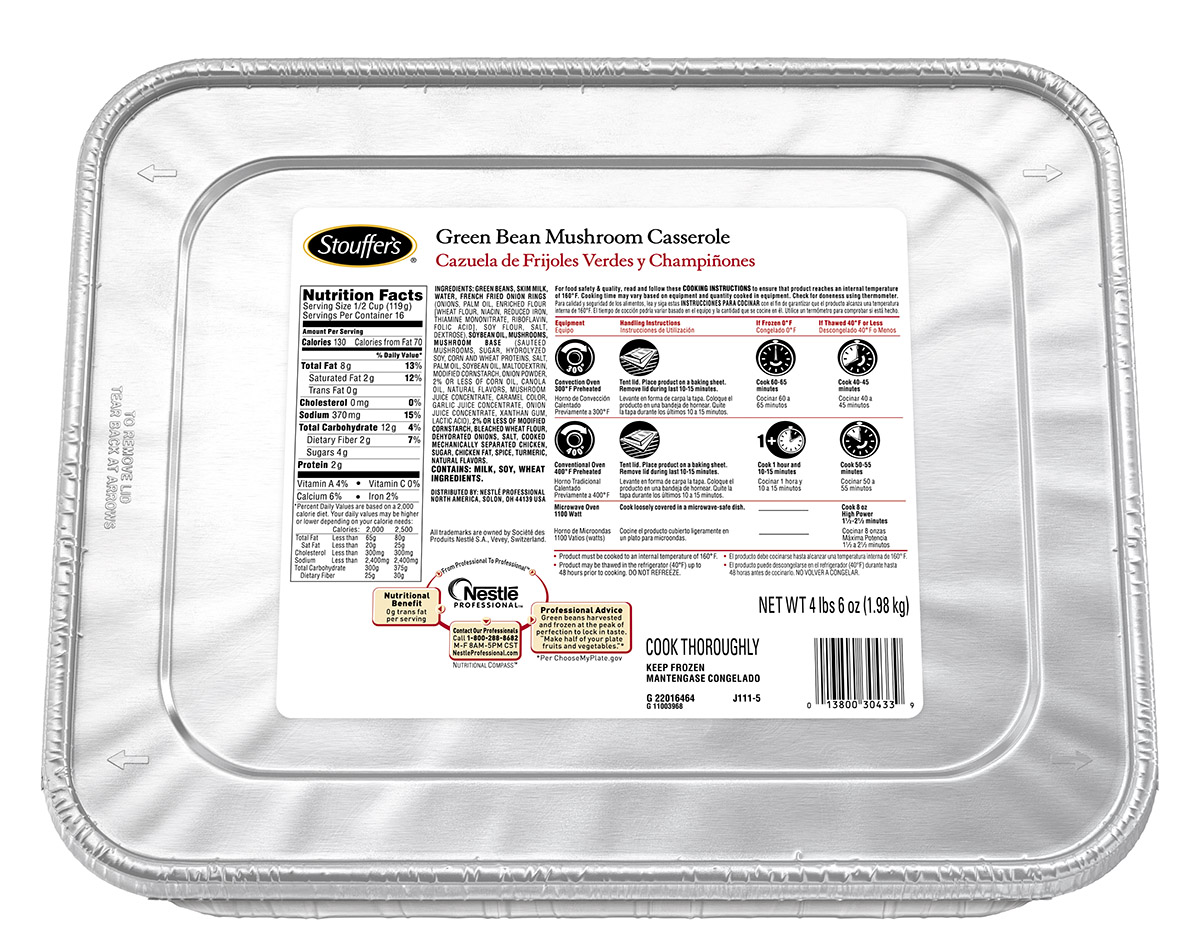 Stouffer’s Green Bean Mushroom Casserole features French-style green beans and sliced mushrooms mixed with onions in lightly seasoned cream sauce and topped with golden brown French-fried onions. With ultimate deliciousness and unmatched simplicity, it’s an easy choice adding Stouffer’s to the menu at your restaurant or food service establishment. Streamline your back-of-house process so you can focus on serving quality food and drink to your guests with Stouffer’s.