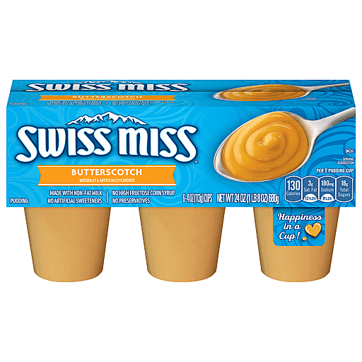 - The manufacturer of Swiss Miss Butterscotch Flavored Pudding, 6 Count Pudding Cups (8 Pack) is Swiss Miss.