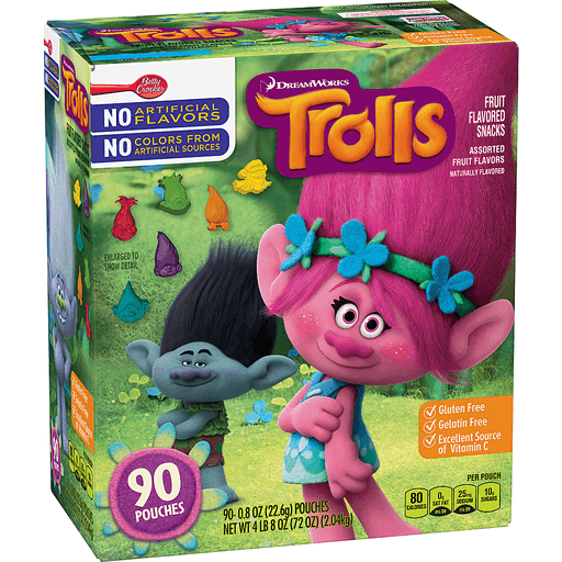 - The product category for Betty Crocker Trolls Fruit Flavored Snacks 90Ct Carton is Fruit Snacks.