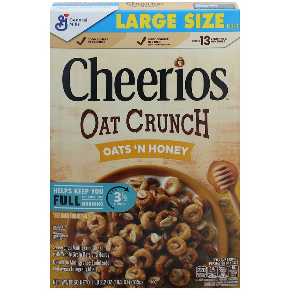 - The product category for Cheerios Oats 'N Honey Oat Crunch Cereal is Honey.