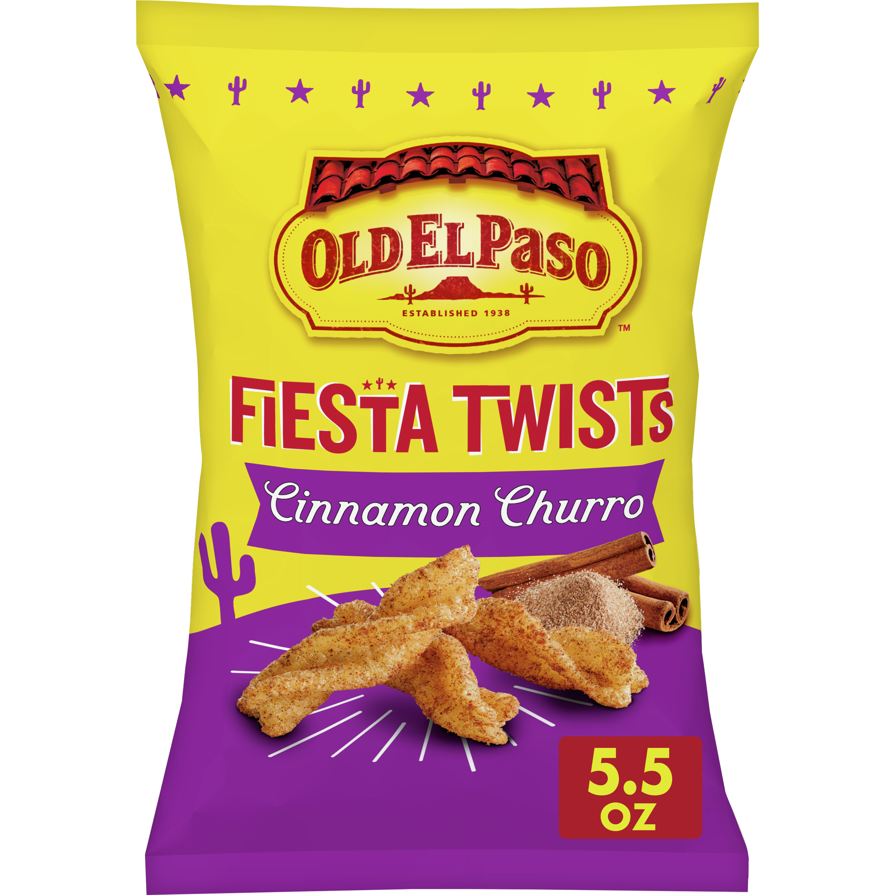 Old El Paso | Crispy and Crunchy with a twist. Bring the whole family together during snack time with Old El Paso Cinnamon Churro Fiesta Twists. These light and airy corn twists have a satisfying crunch that will be unlike your typical savory snacks. These fun shaped corn twists are packed with some of your favorite southwestern flavors. Old El Paso Fiesta Twists feature the perfect blend of delicious cinnamon churro and salty corn and contains no trans fat. This fun and friendly snack food adds satisfying flavor to snack bags or the office snack drawer. Old El Paso Fiesta Twists make great, delicious fun for both kids and adults. Contains one 5.5 oz snack bag in total.