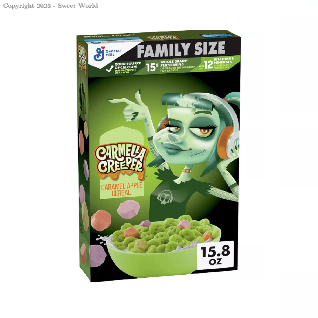 - The manufacturer of Carmella Creeper Zombie Monster Breakfast Cereal Family Size is General Mills.