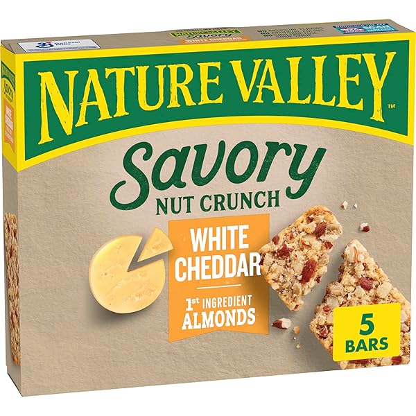 - The product category for Nature Valley Savory Nut Crunch White Cheddar Crispy Almond and Peanut Bars 5 Count is Cereal & Granola Bars.