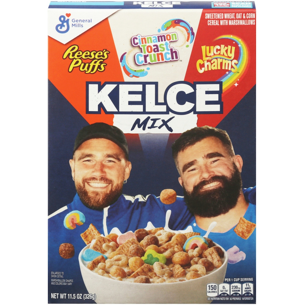 Experience the BIG THREE like never before! Kelce Mix Cereal features a delicious and flavor-packed trio of Travis and Jason Kelce's favorite cereals: REESE'S PUFFS, Cinnamon Toast Crunch, and Lucky Charms. Enjoy the most epic cereals, all in this one mind-blowing mashup. Make the Kelce Mix of sweetened wheat, oat, and corn cereal with marshmallows the MVP of mornings or snack time. Each serving provides 18g whole grain (at least 48g recommended daily) with 12 vitamins and minerals. Pour a touchdown-worthy bowl with milk as part of family breakfast.