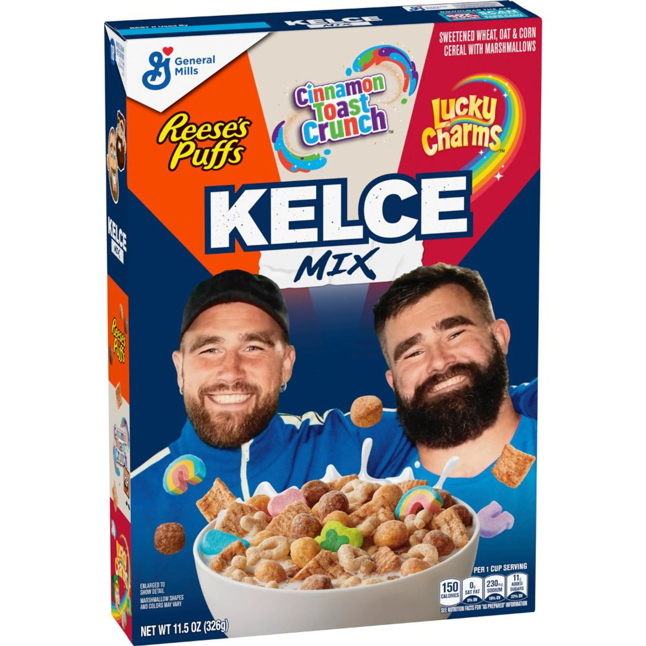 Experience the BIG THREE like never before! Enjoy the most epic cereals, all in this one mind-blowing mashup. Add it to cereal bar recipes for fun team snacks. Kelce Mix Breakfast Cereal, REESE'S PUFFS, Cinnamon Toast Crunch, and Lucky Charms Cereals, Made with Whole Grain, Family Size, 19.7 oz.