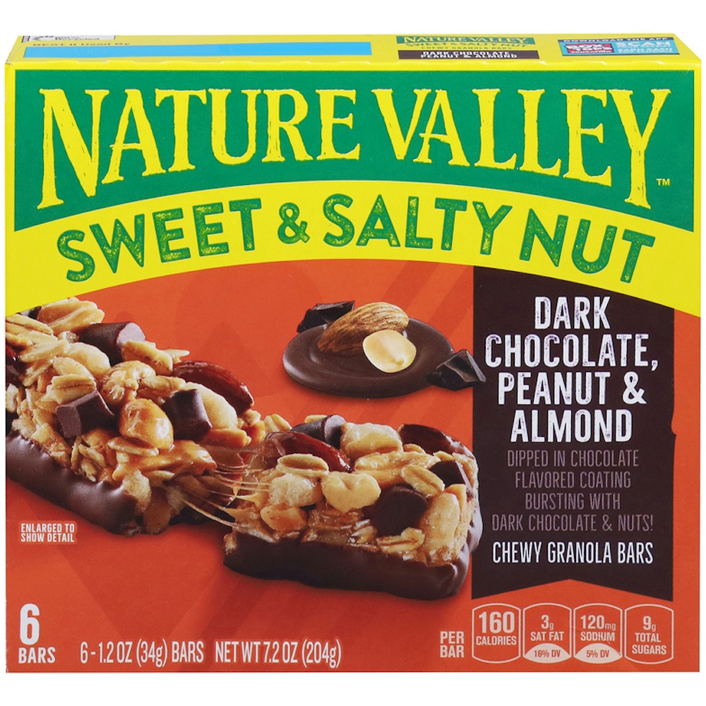 - The product category for Nature Valley Sweet & Salty Nut Dark Chocolate Peanut & Almond Granola Bars 6 Count is Granola Bars.