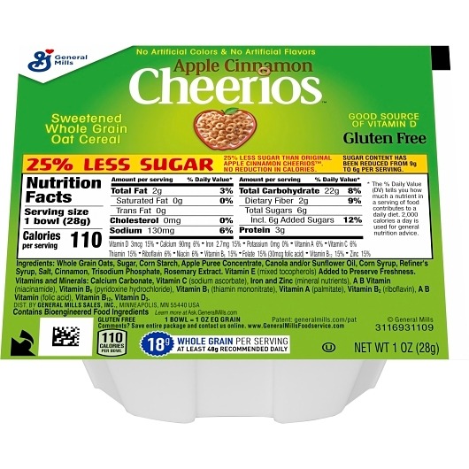 Flavored with apple puree and a daring amount of cinnamon, here's one breakfast cereal with the whole grain goodness of Cheerios that your students will love. It's your own special way to start their day off right with 14 grams of whole grain per serving (at least 48 grams recommended daily)! Kids love the great taste, Moms love the Calcium & Vitamin D.