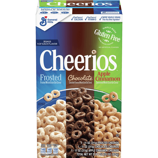 - The product category for Cheerios Cereal Triple Pack; Frosted/Chocolate/Apple Cinnamon is Apples.