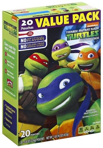 - The product category for Betty Crocker Teenage Mutant Ninja Turtles Fruit Flavored Snacks 20Ct is Fruit Snacks.