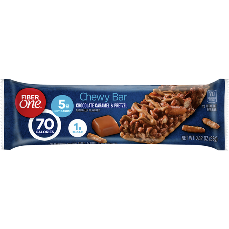 - The product category for Fiber One 70 Calorie Chocolate Caramel & Pretzel Chewy Bar is Pretzels.