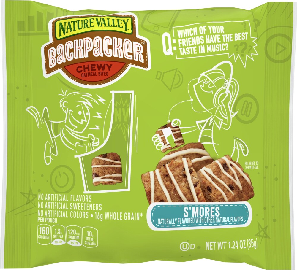 - The product category for Nature Valley Backpacker S'Mores Chewy Oatmeal Bites is Snack Foods.