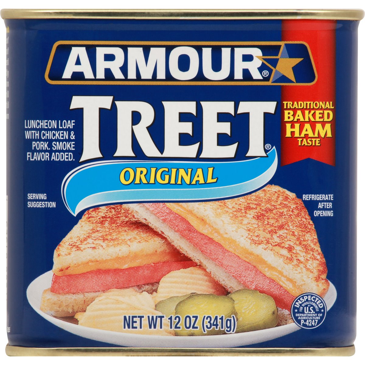 Armour Star Treet Luncheon Loaf Canned Meat offers a quick, easy food with great flavor. Made with chicken and pork, this meat in a can has smoke flavor added for a traditional baked ham taste. Try adding the Treet meat to English muffins for breakfast, or serve it on sandwiches for an easy meal. Enjoy the Treet canned meat on the go while you're camping or hiking, keep it in your pantry for a convenient meal or snack, or have canned luncheon loaf on hand as survival food in a disaster kit. Make any time Armour Star time.