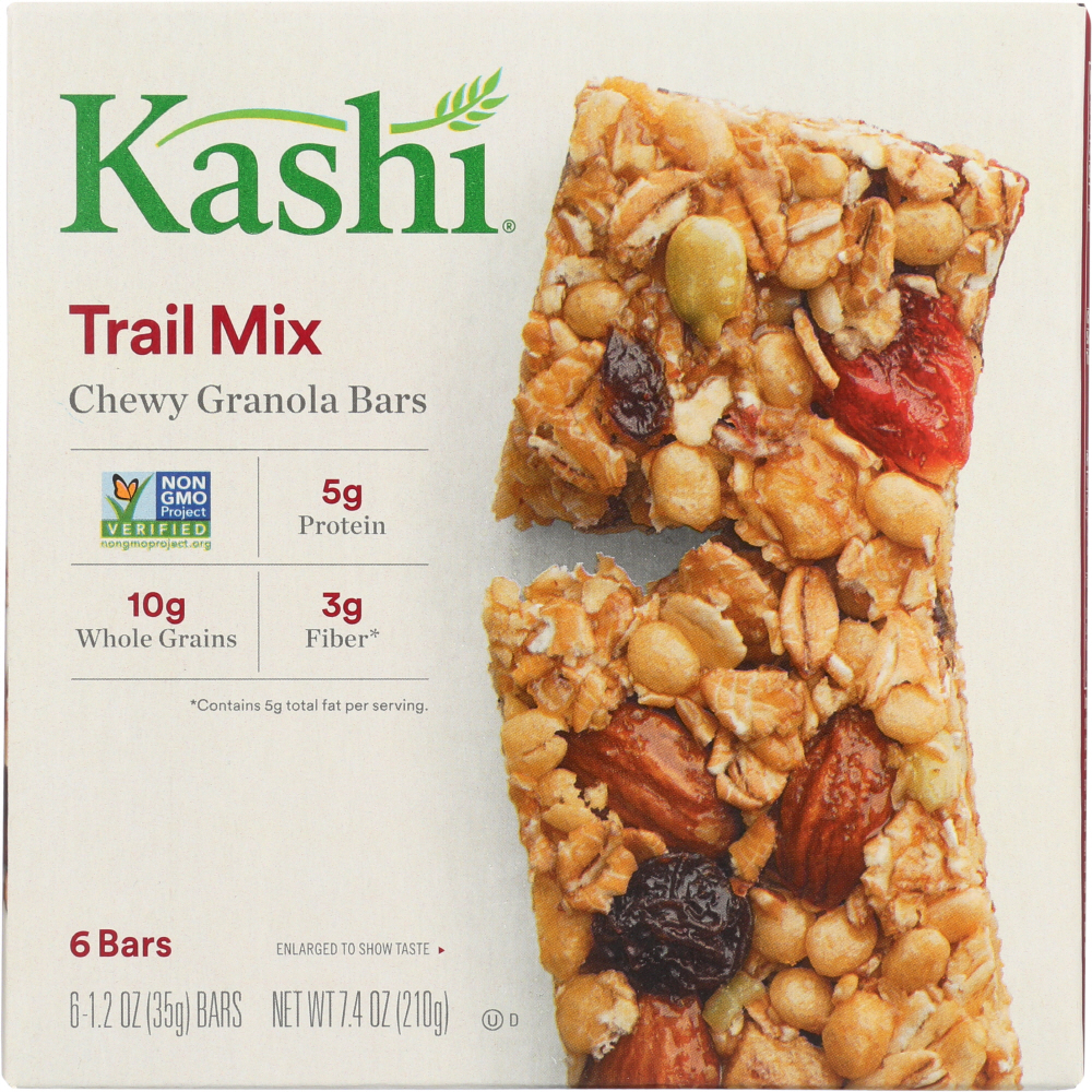 Kashi Trail Mix Granola Bars Are Chewy Whole Grain Granola Bars With 5 G. Of Protein And 3 G. Of Fiber Per Serving. We Use Non-GMO Project Verified.