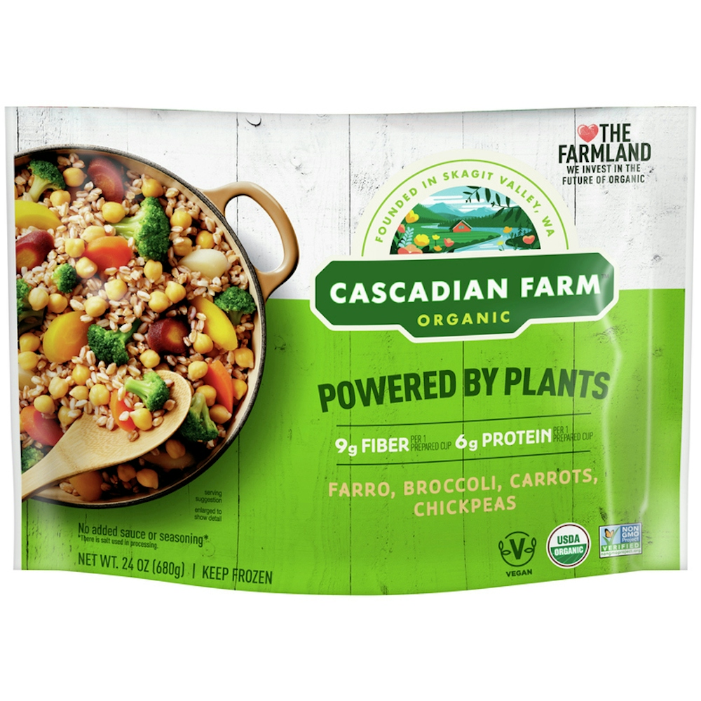 - The manufacturer of Cascadian Farm Organic Powered by Plants Farro, Broccoli, Carrots and Chickpeas Blend is Cascadian Farm.