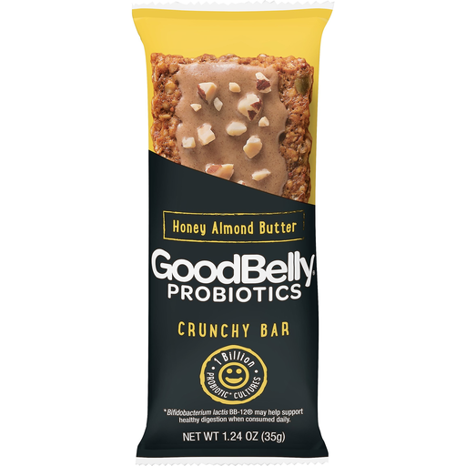 - The product category for Goodbelly Honey Almond Butter Crunchy Probiotic Bar is Honey.