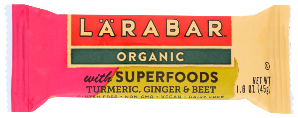 - The product category for Larabar Organic with Superfoods Turmeric Ginger & Beet Fruit & Nut Bar is Personal Care.