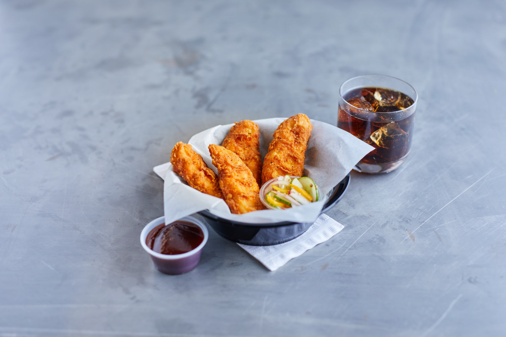Portioned Chicken Tenders with Rib Meat, Water, Seasoning (Salt, Dried Garlic, Corn Starch, Maltodextrin, Dried Onion, Sugar, Dextrose, 2% or Less Natural Flavors), Sodium Phosphates, Salt, Modified Food Starch. Breaded with: Wheat Flour, Water, Salt, Modified Wheat Starch, Spices, Bleached Wheat Flour, Leavening (Sodium Acid Pyrophosphate, Sodium Bicarbonate), Yellow Corn Flour, Wheat Gluten, Extractives of Paprika, Annatto and Turmeric, Dextrose, Spice Extractive, Caramel Color. Breading Set in Vegetable Oil.