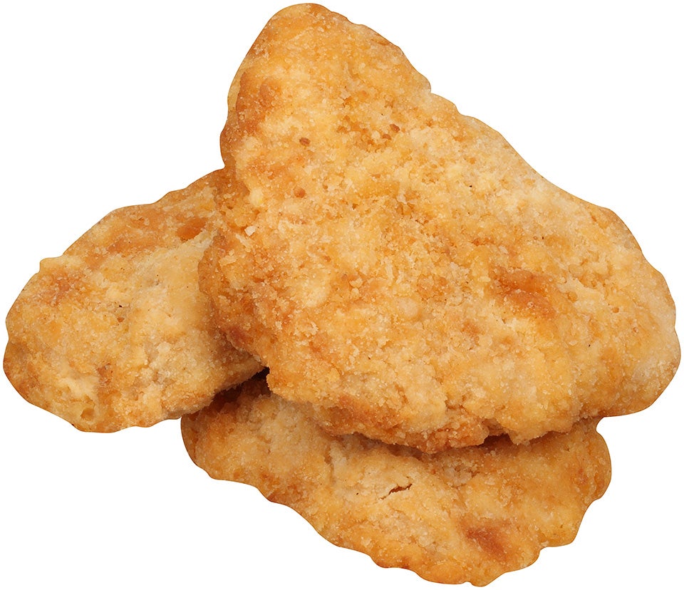 Boneless, Skinless Chicken Breast Filets with Rib Meat, Water, Salt, Modified Food Starch, Seasoning [Flavors, Maltodextrin, Sugar, Salt, Vegetable Stock (Carrot, Onion, Celery), Garlic Powder], Sodium Phosphates, Soy Protein Concentrate. Breaded with: Bleached Wheat Flour, Water, Wheat Flour, Salt, Sugar, Wheat Gluten, Leavening (Sodium Bicarbonate, Sodium Acid Pyrophosphate, Sodium Aluminum Phosphate, Monocalcium Phosphate), Leavening (Sodium Bicarbonate, Sodium Aluminum Phosphate, Monocalcium Phosphate), Dextrose, Yellow Corn Flour, Yeast Extract, Onion Powder, Yeast, Extractives of Paprika, Annatto, Turmeric, Garlic Powder, Spice, Disodium Inosinate and Disodium Guanylate. Breading Set in Vegetable Oil.