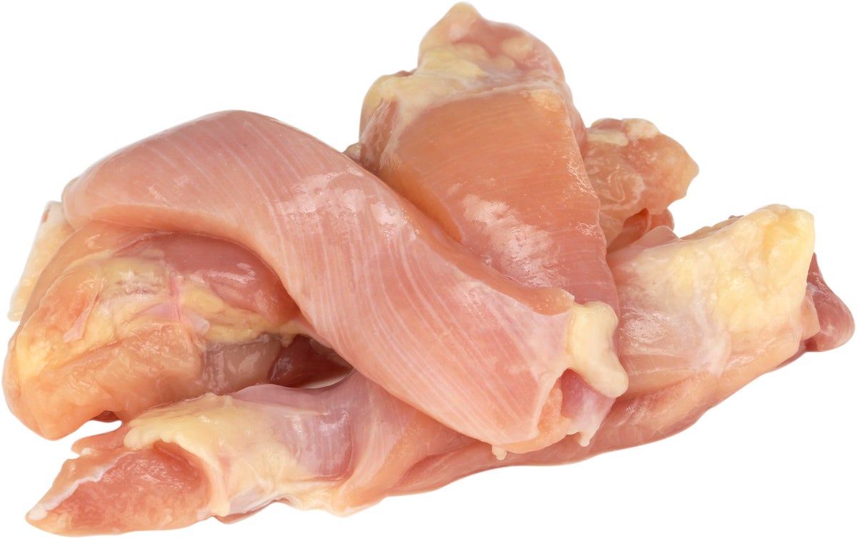 Boneless, Skinless Chicken Leg Meat Strips.