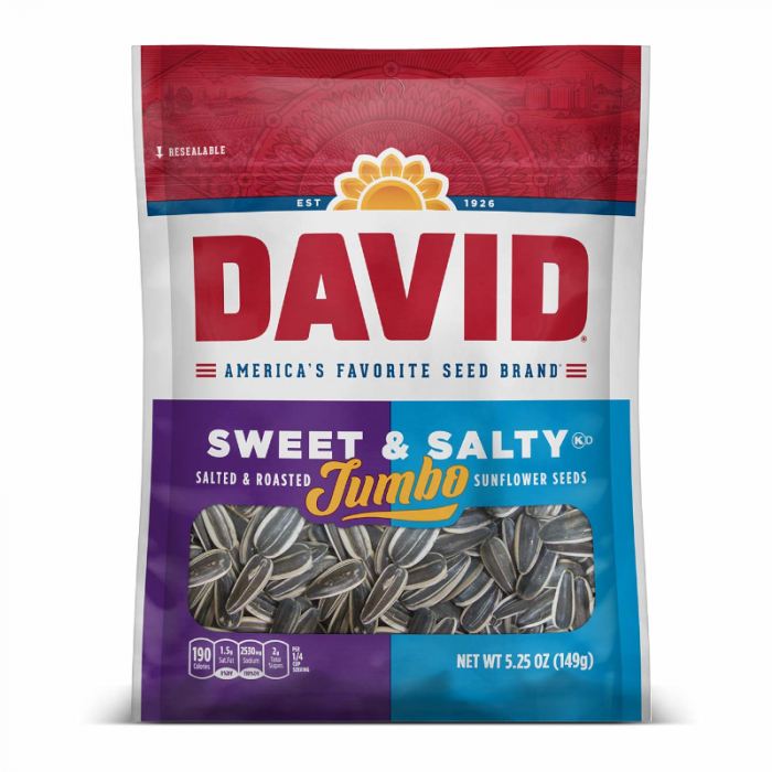 - The manufacturer of David Roasted and Salted Sweet and Salty Jumbo Sunflower Seeds, Keto Friendly Snack, 5.25 Oz. Bag is David.