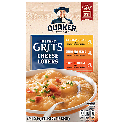 - The product category for Quaker Instant Grits Cheese Lovers (12 - 1 Ounce) 12 Ounce 12 Pack Pouches is Cereal & Granola.