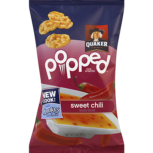 - The product category for Quaker Popped Sweet Chili Rice Snacks 3 Ounce Plastic Bag is Chips.