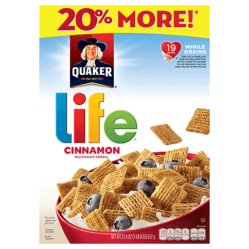 - The product category for Quaker Life Cinnamon Multigrain Cereal 21.6 Ounce Box is Cereal & Granola.