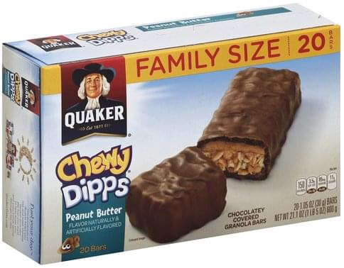 - The product category for Quaker Chewy Dipps Peanut Butter Granola Bars (20-1.05 Oz) 21.1 Ounce 20 Pack Bag in Box is Cereal & Granola Bars.