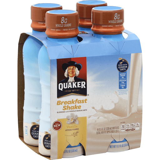 - The product category for Quaker Vanilla Breakfast Shake (4-11.1 Fl Oz) 44.4 Fluid Ounce 4 Pack Plastic Bottles is Calculators.