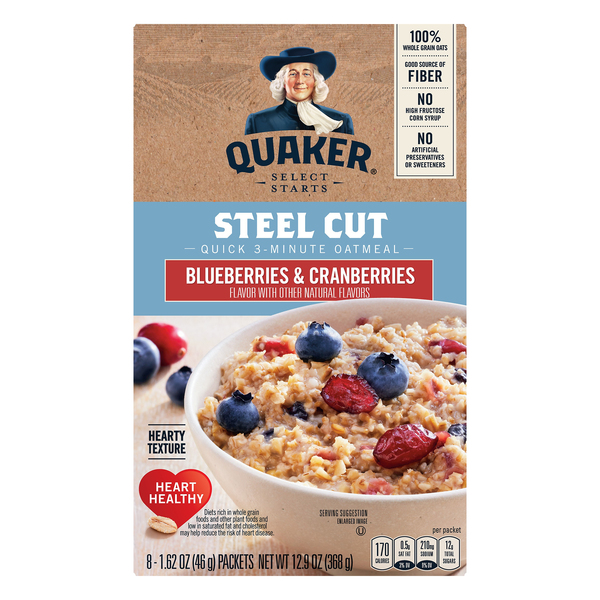 - The product category for Quaker Steel Cut 3 Minute Blueberry Cranberry Oatmeal is Oats, Grits & Hot Cereal.