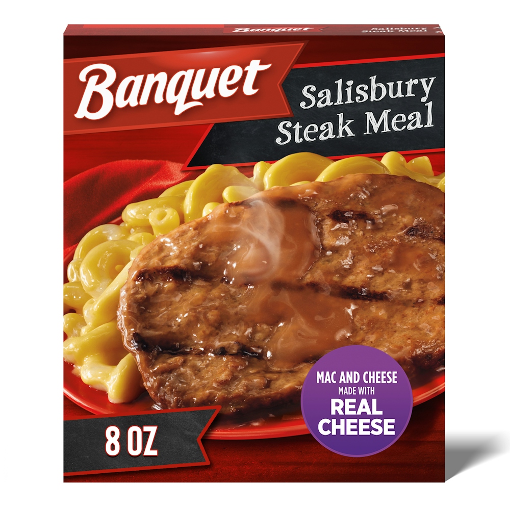 - The product category for Banquet Salisbury Steak with Mac and Cheese, Frozen Meal, 8 Oz. is Prepared Meals & Entrées.