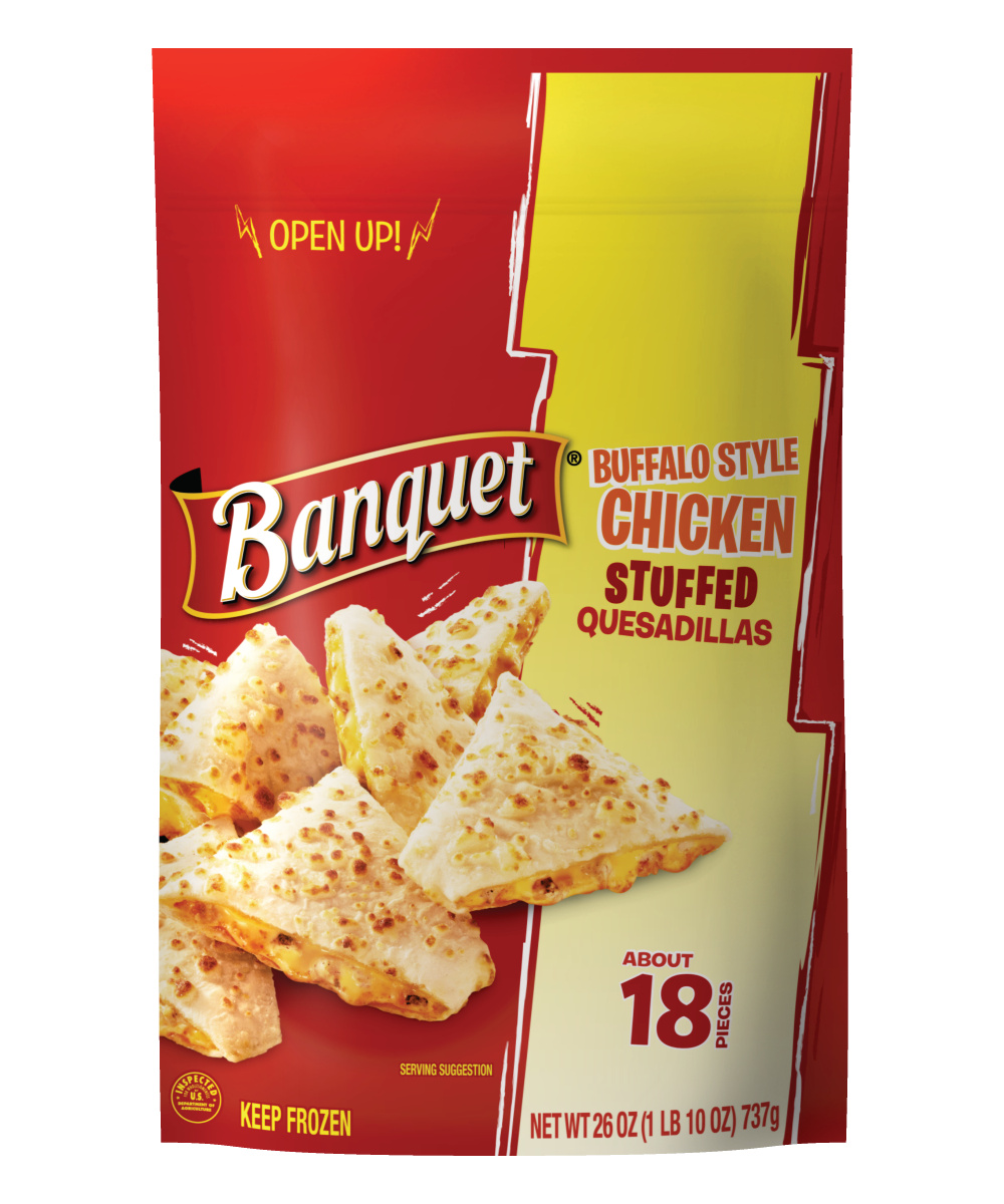 - The product category for Banquet Buffalo-Style Chicken Stuffed Quesadillas Frozen Snack, 26 Ounce is Pies & Tarts.