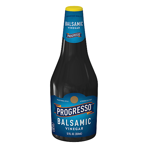 Progresso™ Balsamic Vinegar. Progresso quality. Traditional style. 10 Calories per tbsp. 12 fl. oz. (354 ml). Made with grape musts. Aged to perfection in wooden casks. Perfect for dressings, sauces, roasts and on vegetables. how2recycle.info. Questions or Comments Call 1-800-200-9377, Weekdays 7:30-5:30 CT. © General Mills.