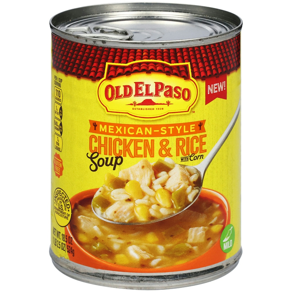 - The product category for Old El Paso Mexican Style Chicken and Rice with Corn Soup is Soups & Broths.