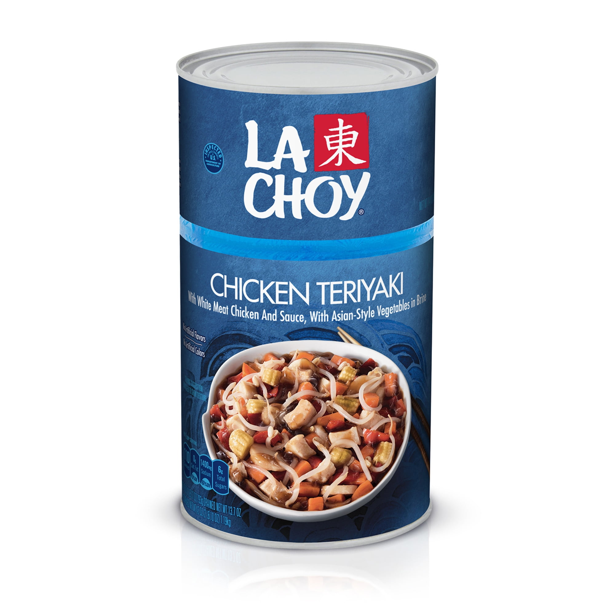Enjoy your favorite Asian meal any day of the week with La Choy Teriyaki Chicken. Made with tender cuts of white meat chicken and Asian-style vegetables seasoned with a flavorful teriyaki sauce, this Chinese-inspired dish is best served over rice or topped off with La Choy Chow Mein Noodles. Best of all, this chicken teriyaki is made with no artificial flavors and no artificial colors. Order this great-tasting Asian classic in a 42-ounce can of La Choy Teriyaki Chicken With Asian-style Vegetables for an easy meal the whole family will love.