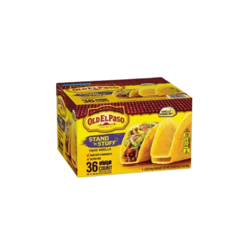 Make taco night a stand n invitation with Old El Paso Stand N Stuff Crunchy Taco Shells. Stand N Stuff Shells have a flat bottom so they stand up on their own. Fill these gluten-free taco shells up with your favorite meats cheeses beans and fresh toppings for a taco fiesta. Now in a larger size to feed the entire family!For more than 80 years Old El Paso has been bringing families and communities together to celebrate old and new traditions around delicious Mexican-inspired flavors. We believe that any night can be a taco night and weâre here to help make it a little easier and a lot more delicious. Our variety of crispy hard taco shells tasty soft tortillas flavorful seasonings and much more help make taco night fun.
