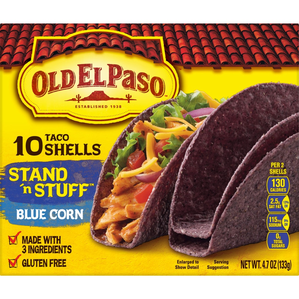 - The product category for Old El Paso Blue Corn Stand 'N Stuff Taco Shells 10 Count is Taco Shells & Tostadas.