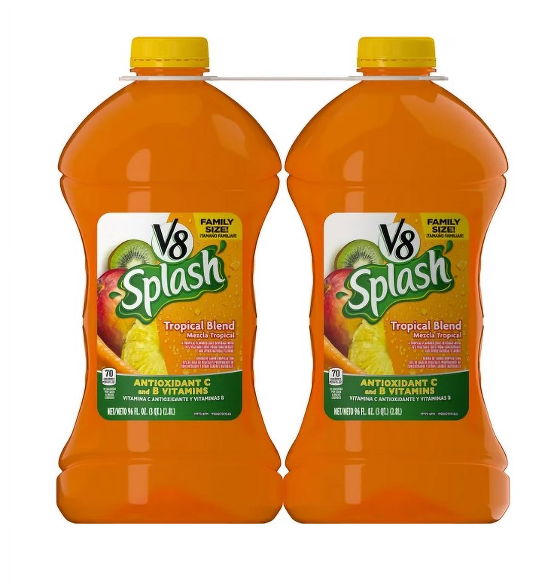 - The product category for V8 Splash Tropical Blend Flavored Juice Beverage, 96 Fl Oz Bottle (2 Pack) is Juice.