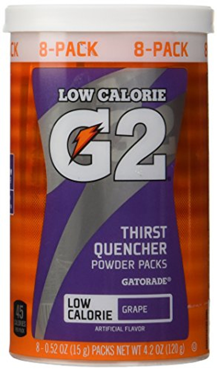 - The product category for Gatorade G2 Thirst Quencher Low Calorie Grape Powder Packs (8-0.52 Oz) 4.2 Ounce 8 Pack Canister is Beverages.