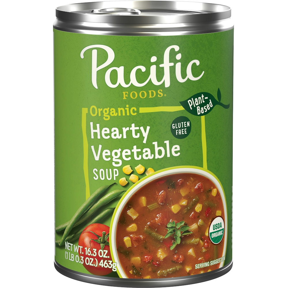 - The product category for Pacific Foods Organic Hearty Vegetable Soup, Plant Based, 16.3 Oz Can is Soups & Broths.