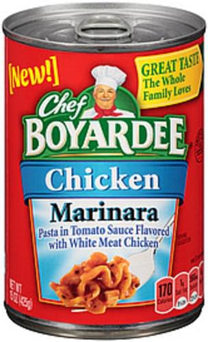 - The product category for Chef Boyardee Chicken Marinara Pasta, 15 Oz is Pasta & Noodles.
