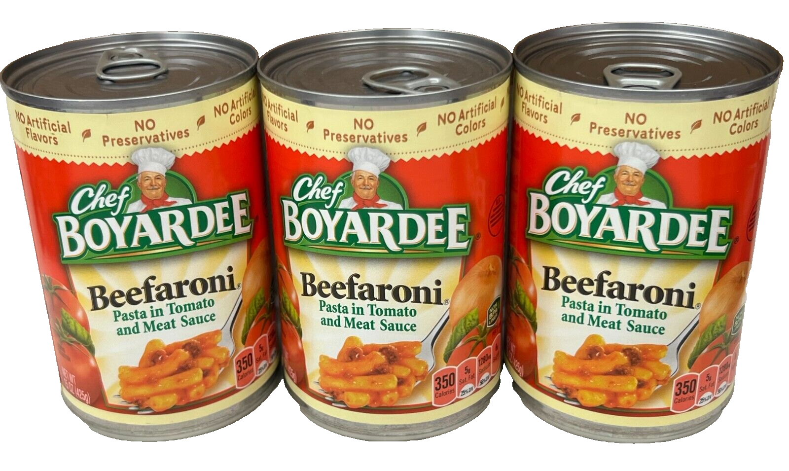Dig into a flavourful entre in minutes. Kids & parents alike love the bold flavour of Chef Boyardee Beefaroni. The mouth-watering combination of beef & tomatoes from California helps support wholesome lunches & comforting dinners. This easy to prep pasta contains no artificial colours, flavours or preservatives & always ready to go. Non-BPA lined cans. Thank goodness for Chef Boyardee.