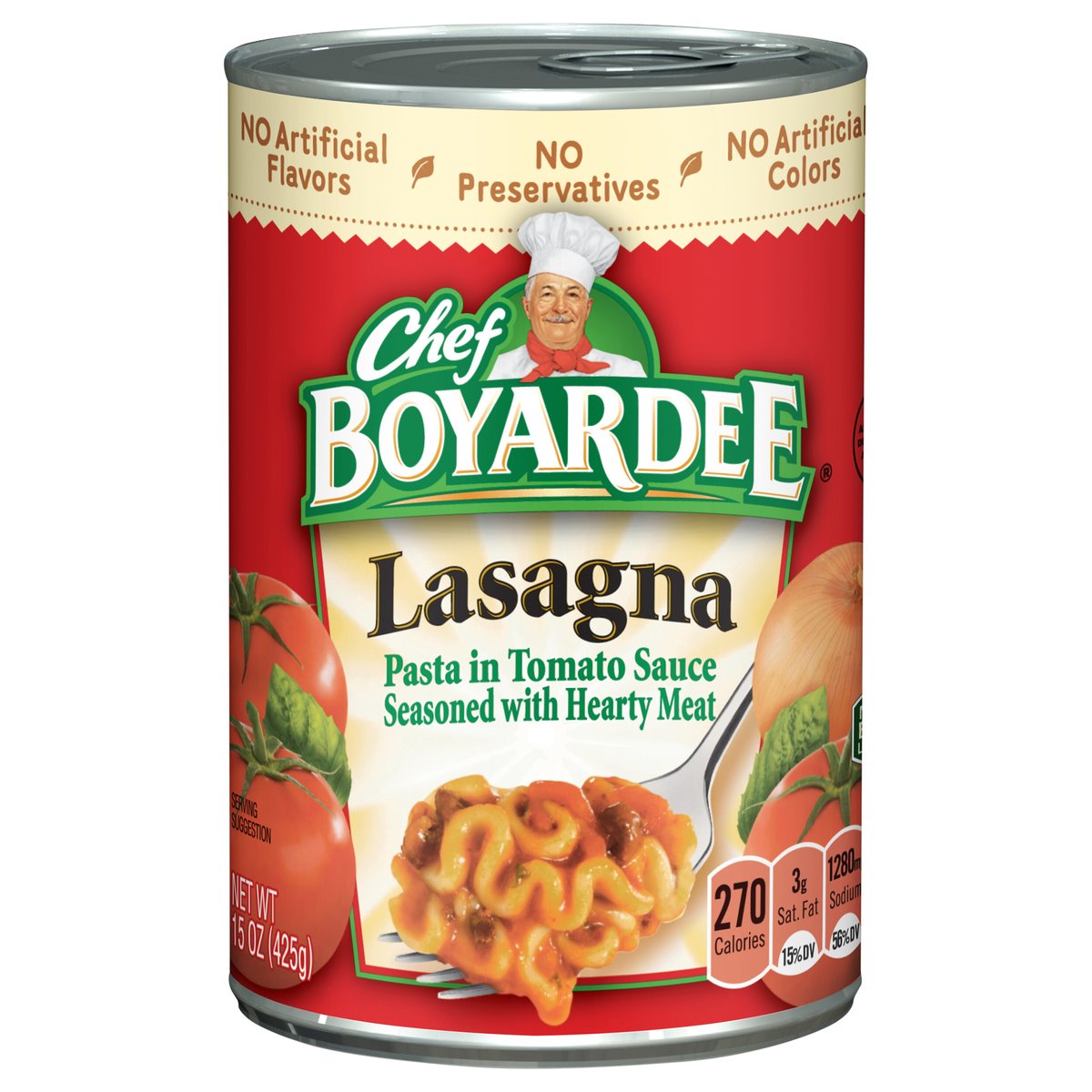- The product category for Chef Boyardee Lasagna, 15 Oz. is Pasta & Noodles.