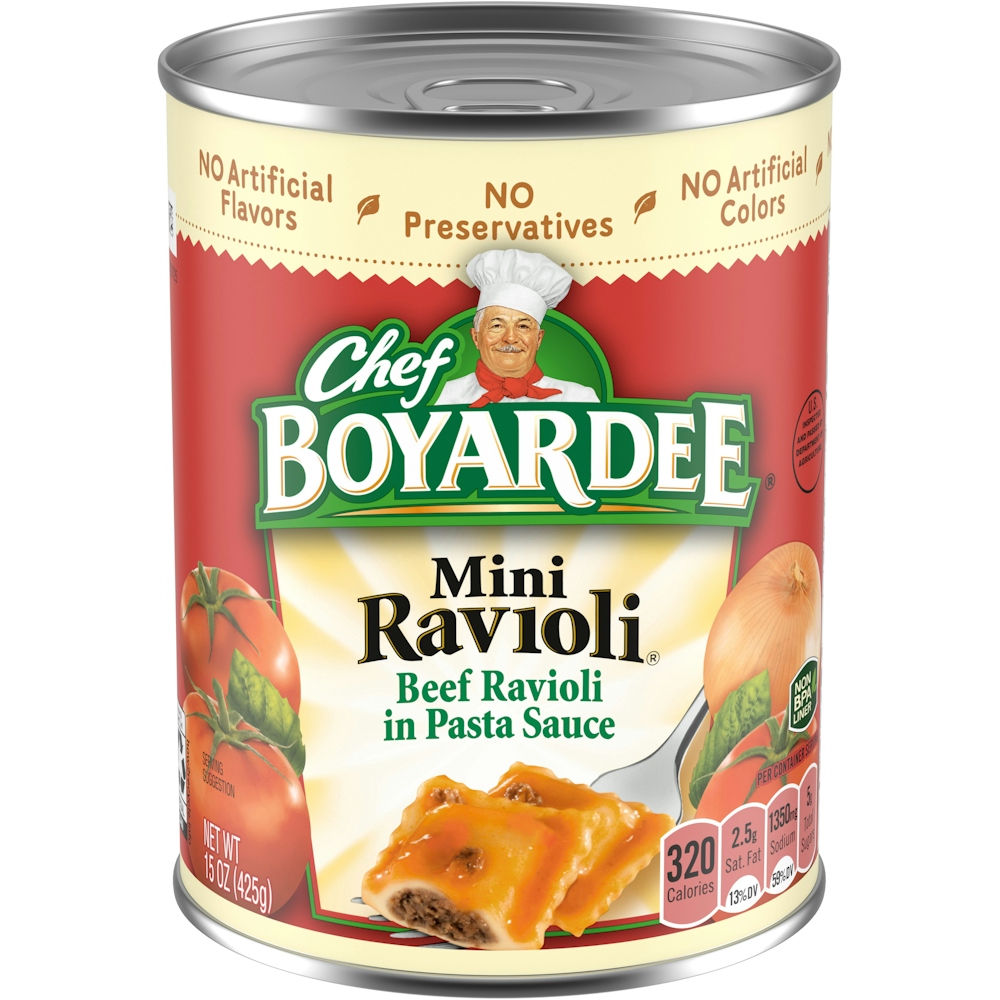 - The product category for Chef Boyardee Mini Ravioli 15 Oz is Pasta & Noodles.