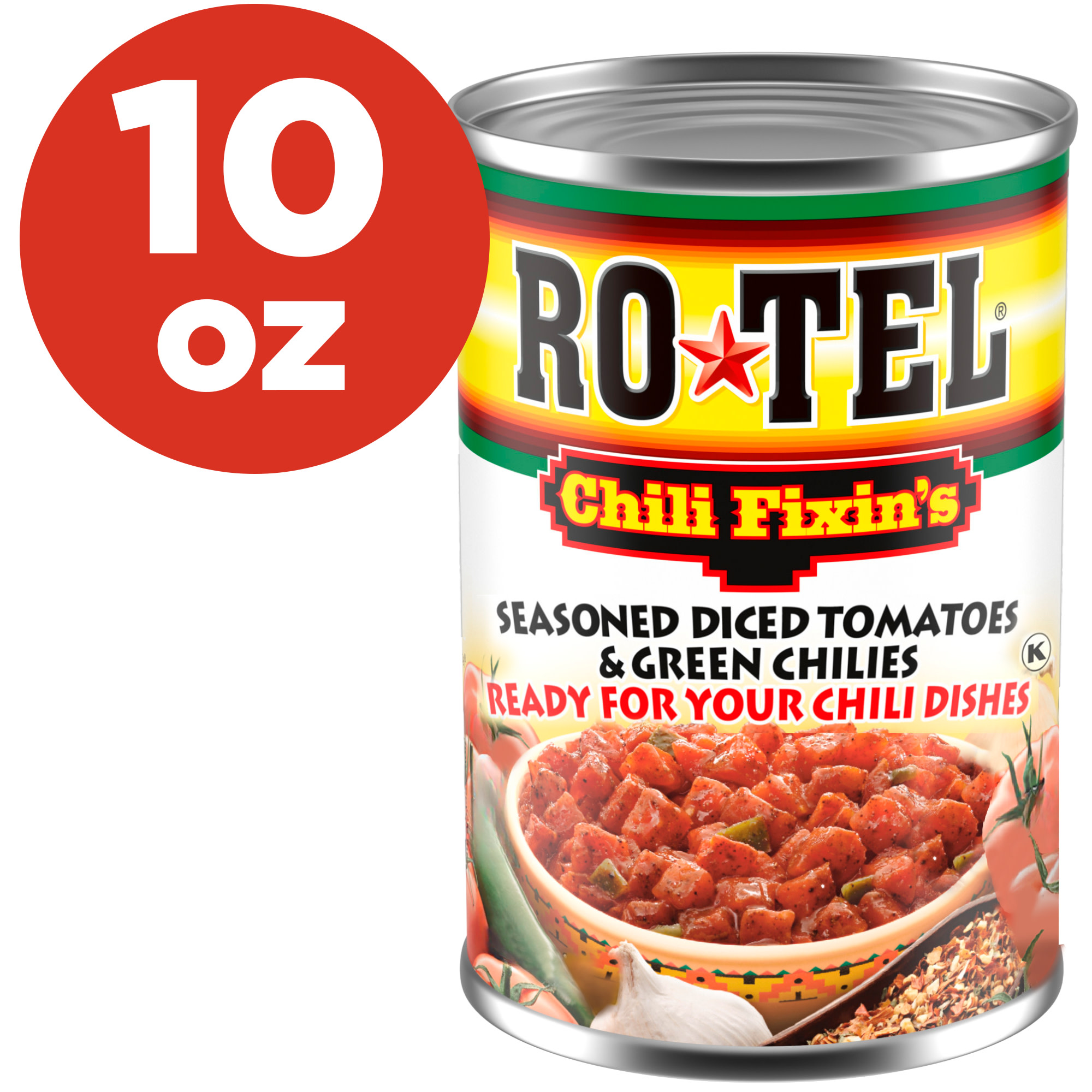- The product category for Rotel Chili Fixin'S Seasoned Diced Tomatoes and Green Chilies, 10 Oz. is Soups & Broths.