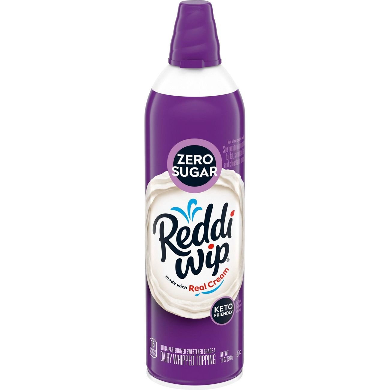 Serve up a delicious, rich cream taste with Reddi-wip Zero Sugar Whipped Topping for a versatile dessert topping. The zero sugar version of this dairy whipped topping offers the creamy texture and sweet flavor you know and love. Made with real cream as the first ingredient, this keto-friendly whipped topping has 15 calories per serving, is gluten free and is made without hydrogenated oils, which are commonly found in other whipped topping products. Reddi-wip adds delicious flavor and excitement to countless desserts such as strawberry shortcake, pies, sundaes, milkshakes and brownies. Not only is this whipped topping great for your favorite keto desserts or used as ice cream toppings, but you can add some extra joy to fruit, hot cocoa and coffee, or use on pancakes and waffles for a fun kids breakfast. It also makes a delicious base for whipped frosting. Forget all the hassle of whipped cream, this spray couldn’t be easier to use. Simply shake the can, flip it over and push the nozzle down. Store Reddi-wip in the refrigerator. Whether you’re celebrating holidays with the family, enjoying breakfast or dessert after dinner, Reddi-wip Zero Sugar Whipped Topping brings something special. Reddi-wip can transform any moment.