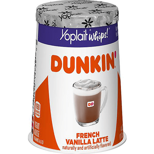 - The product category for Yoplait Whips! Dunkin' French Vanilla Latte Yogurt Mousse is Yogurt.