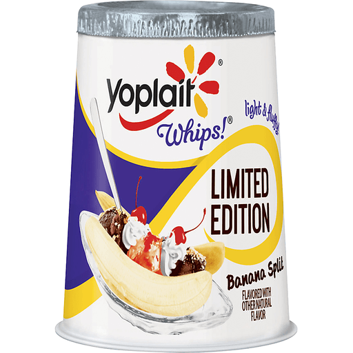 - The product category for Yoplait Whips Lf Ygrt Banana Split is Yogurt.