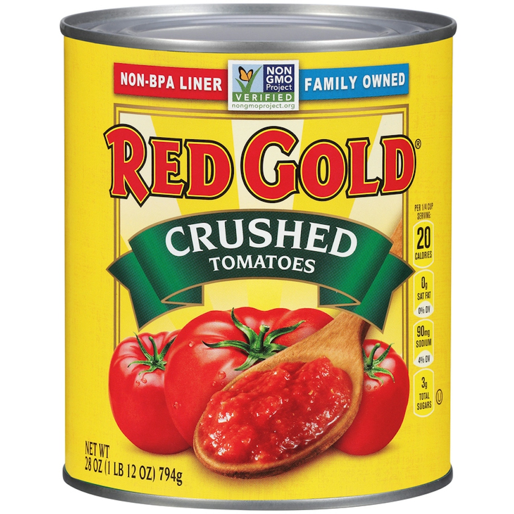 Bring vine-ripened fresh tomato flavor to your favorite family dishes and culinary creations with Red Gold Crushed Tomatoes. This pantry staple is a cornerstone of a busy family's meal preparation toolbox, ideal for adding full tomato flavor to your favorite family meals. Our crushed tomatoes are perfect for when your recipe calls for a texture that blends smoothly with other small or soft ingredients. Red Gold tomatoes are grown on sustainable family farms and vine-ripened to peak freshness before canning, ensuring they add full, fresh, gluten-free flavor to your chili, pasta dishes, soups, and casseroles. You can trust Red Gold canned tomatoes to provide generous amounts of vitamin C in your vegan diet while adding bright, fresh flavor. The BPA-free lined cans ensure real fresh tomato taste without unwanted chemicals, and each can is kosher, vegan, gluten-free, and Non-GMO Project Verified, ensuring you can serve everyone in your family healthy meals they will be happy with.